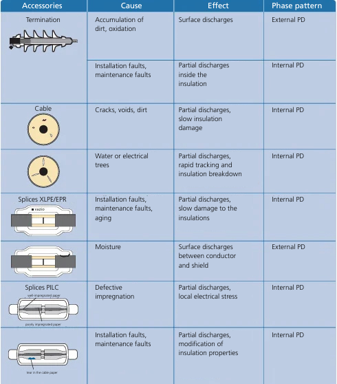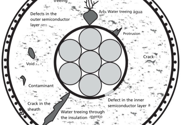 These defects are often identified during VLF applied-voltage tests, both in commissioning and in routine maintenance. The figure below presents visual examples of these defects.
